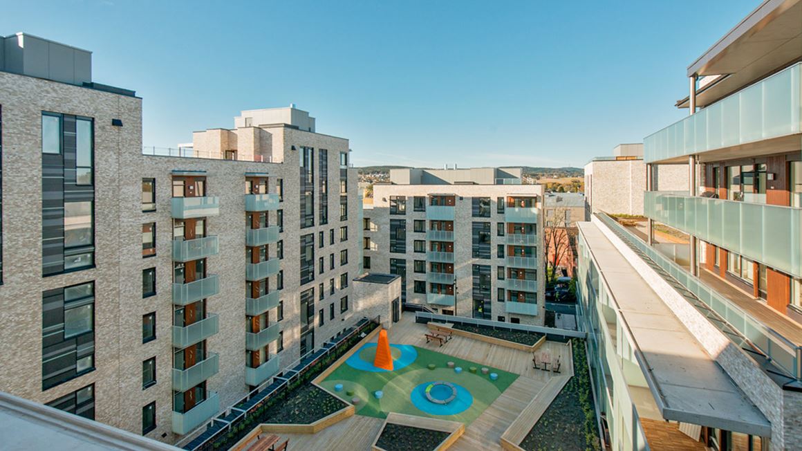 Hvert enkelt bygg en felles takterrasse i tillegg til at det er en felles takterrasse i uteområdet. – Som om ikke det er nok, vil også flere av leilighetene ha private takterrasser.