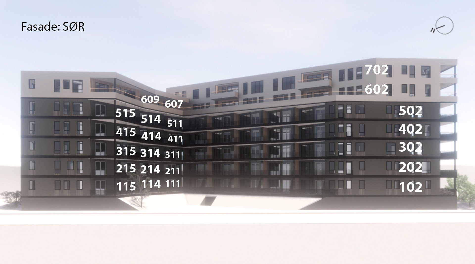 | Leilighetsnr. 602 | SØR | 6 | 4 | 110 | Solgt | Solgt |