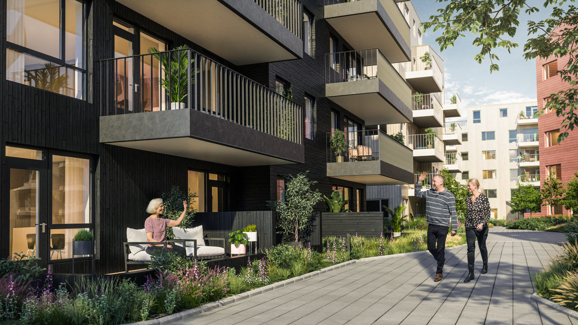 Det er ingen ferdigstilte leiligheter enda, men kom innom visningssenteret vårt så får du en innføring i det som blir levert. - Blir det næringslokaler i byggene?