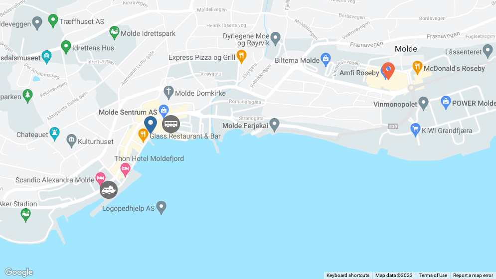 AMFI Roseby ligger like ved E39, sentralt plassert mellom Årø lufthavn og Molde sentrum, med kort vei også til Molde fergekai.