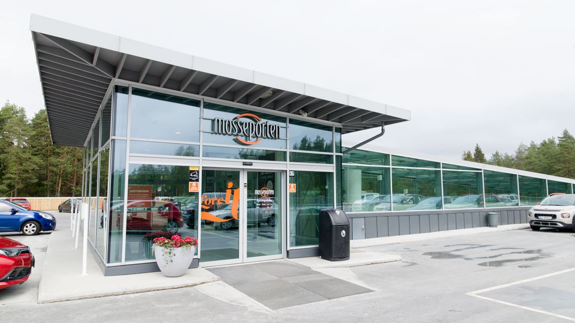 Mosseporten ligger i krysset E6 og RV120, bare 4 minutter med bil fra Moss sentrum.