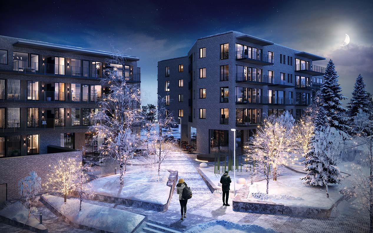 Bedre løsninger preger også ofte nærområdet rundt nye bygg. Garasjeplass, kollektivtilbud, kafeer, butikker og hyggelige parker vil være typiske elementer i det hyggelige og levende nærmiljøet som løfter hjemmet ditt et ekstra hakk.