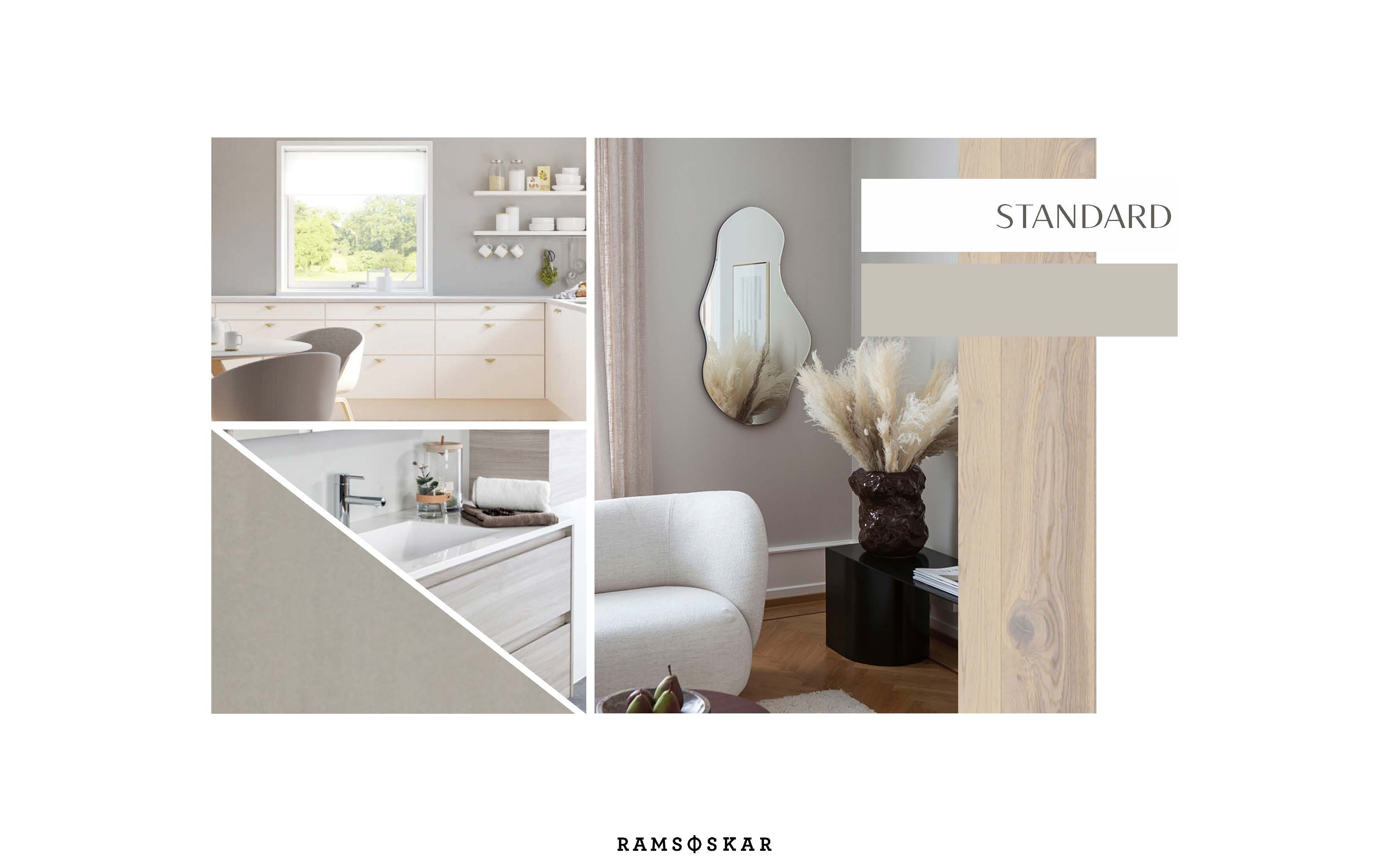 Hver pakke består av fargepalett, materialer, ulike gulv-, kjøkken- og baderomløsninger. Om boligkjøperen ønsker det, kan pakkene enkelt utvides med forslag til møbler, tekstiler og lamper eller noen timers interiørrådgivning, forteller Trond Ramsøskar. Les mer om stilpakkene her.