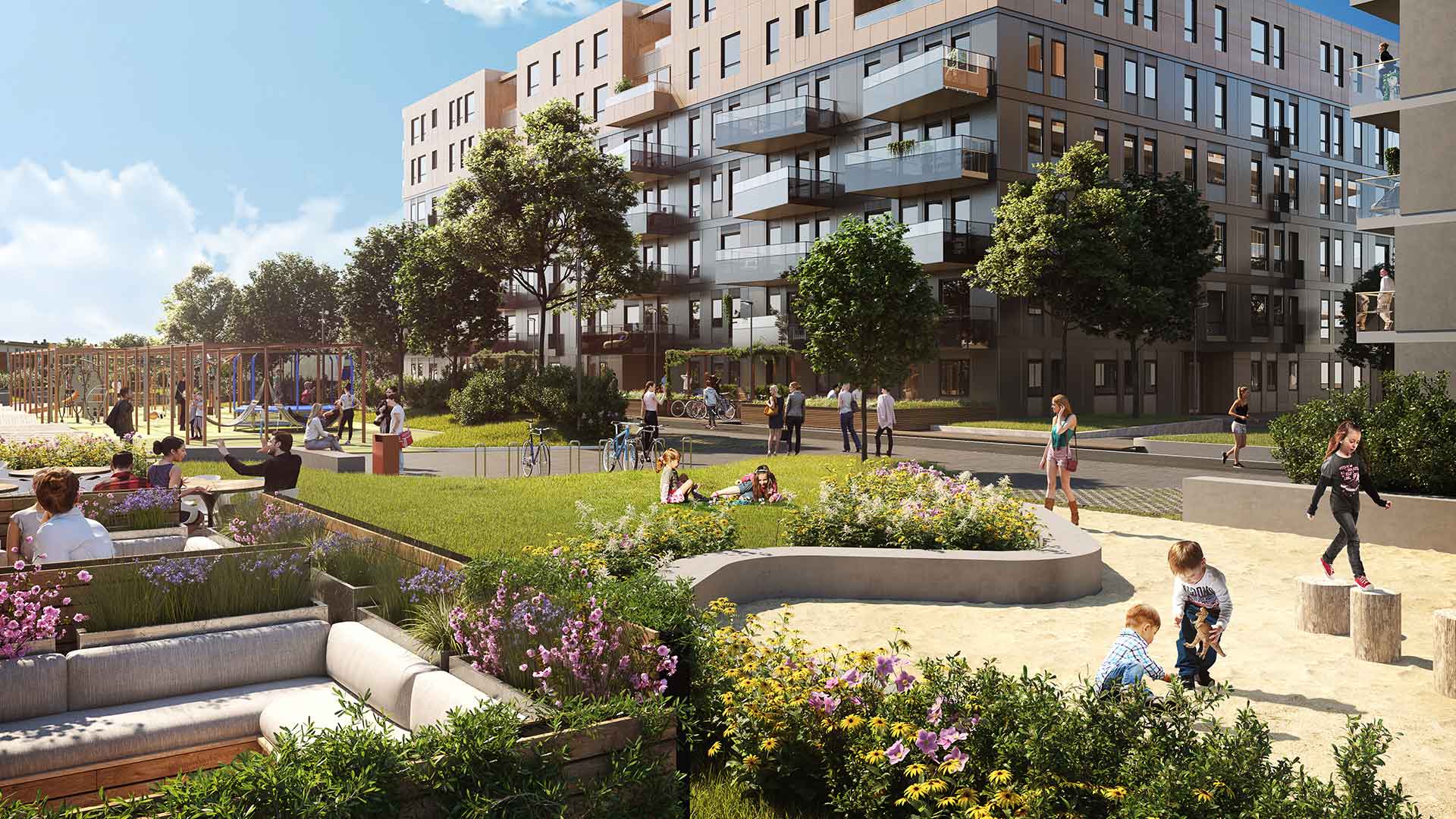 Bor du på Skårerløkka, vil du få en stor, flott aktivitetspark rett utenfor døren. Dette blir en lang strekning med urbant preg, lekeplass, gode plenarealer og sosiale møteplasser. Det beste av alt er at hele parkområdet blir helt bilfritt.