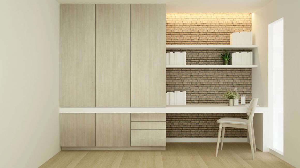Har du mangel på plass i leiligheten, men et stort garderobeskap eller walk-in-closet? Hvorfor ikke frigi skapplass til et skrivebord i garderoben. Ta en gjennomgang i klesskapet eller andre type skap du har i hjemmet, og se på muligheten for å bygge inn en kontorplass som enkelt kan gjemmes bak garderobedørene. Har du et eget garderoberom kan du enkelt lage plass til en skrivepult og et eget arbeidshjørne. Ikke bare får du et eget arbeidshjørne, men det er også mulighet for å få ryddet opp i klesskapet en gang for alle. I tillegg kan du enkelt bare lukke døren når arbeidsdagen er ferdig, så du slipper å se kontoret på kveldstid.