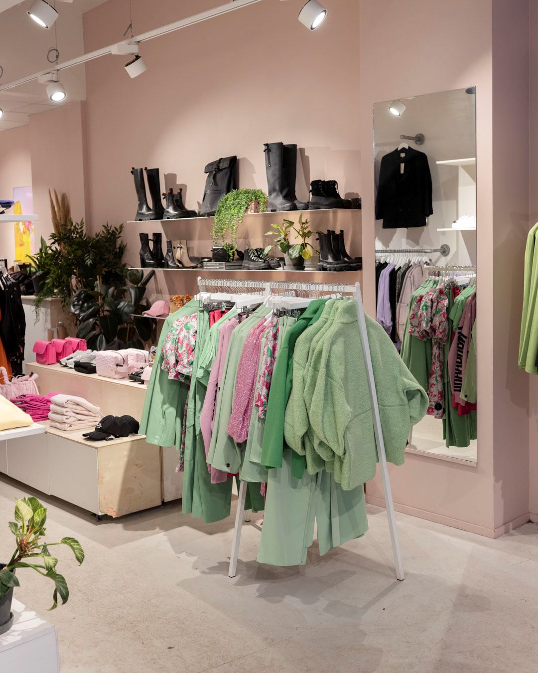 Hun unnskylder seg for at det er rotete, men vi har sjeldent sett en ryddigere klesbutikk. På hyllene ligger vesker og klær utstilt i nøye utvalgte fargekombinasjoner, i vinduet står pent påkledde mannekenger i trendy sommerkjoler.