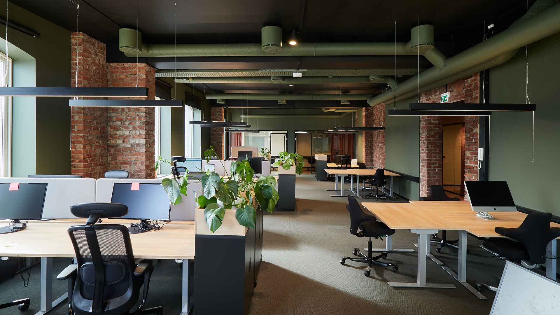 Bærekraftighet er i vinden som aldri før – men det er ikke bare av miljøhensyn. Å tenke smart når det gjelder materialer og arealeffektivitet kan nemlig spare bedriften din for store summer. Har dere for eksempel sett dere ut et lokale som har originale teglsteinsvegger eller bjelker? Å bevare noen av disse materialene er ofte mer bærekraftig enn å rive og bygge nytt. I tillegg gir flater med ulik tekstur personlighet til et ellers generisk rom. Dette kan vi ofte se i eldre bygårder som for eksempel i våre lokaler i Karl Johans gate 2 og i Karl Johans gate 5.
