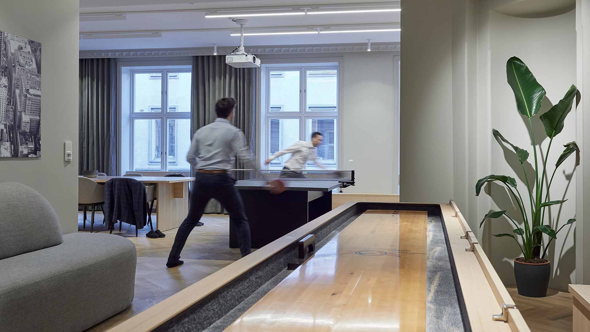 – Vi skiller oss ut i mengden med lokaler som dette. Vårt mål er å rekruttere de beste folkene, og ikke minst: å beholde de. Vi tar ofte med potensielle jobbsøkere hit i intervjurunder, men også kunder, forteller Marcus.