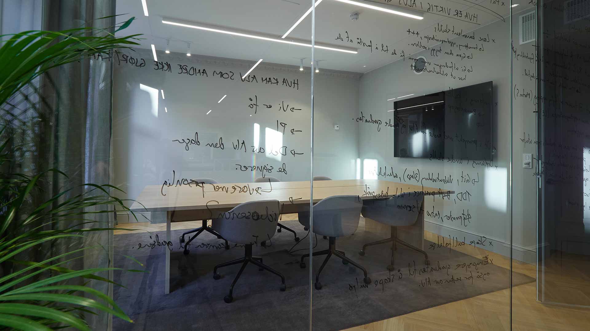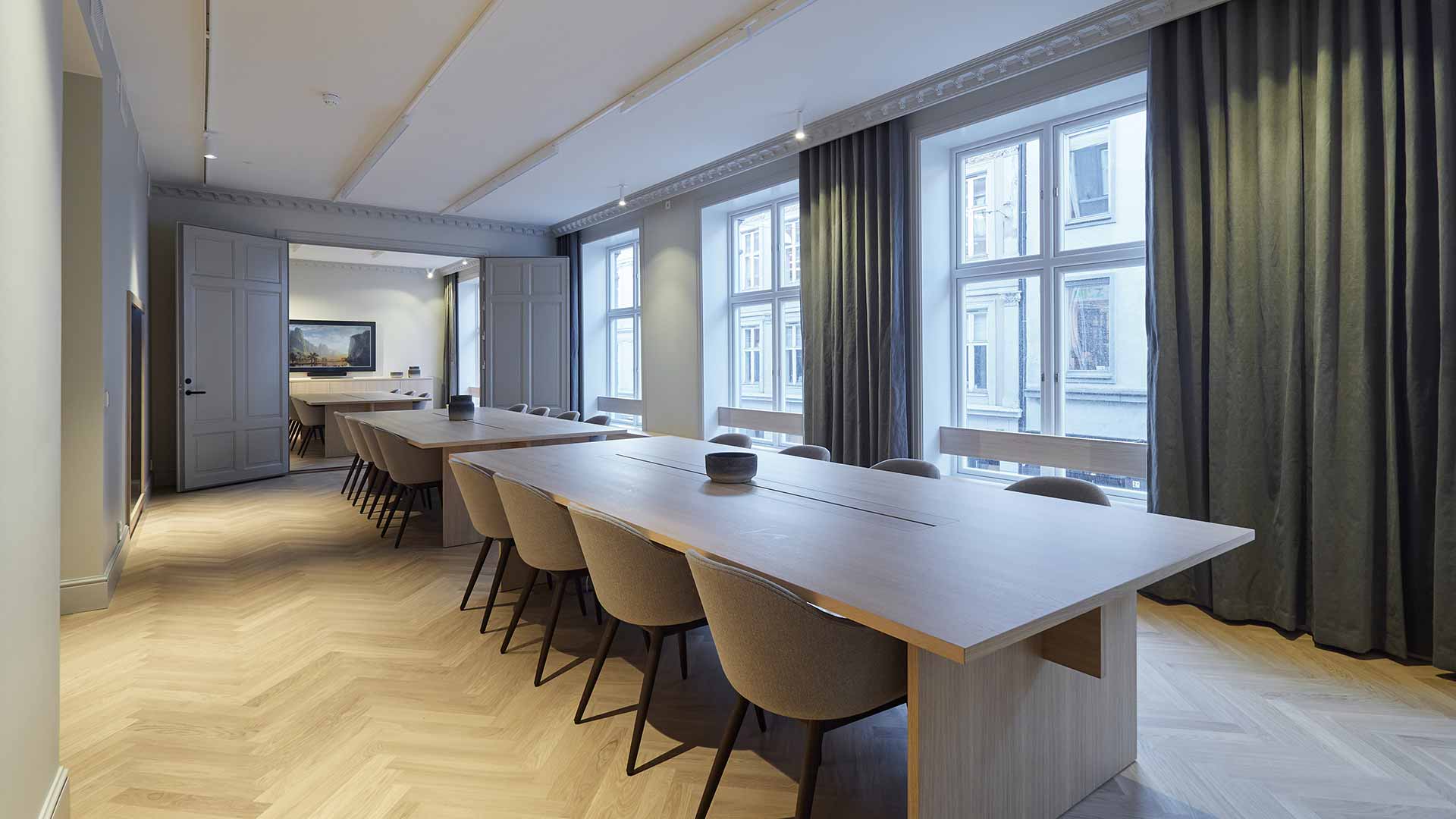 – At vi har fått dette til å se ut som en leilighet med løsning og interiør som gjenspeiler dette og ikke et typisk kontor. Det er innebygget ventilasjon, god belysning og bl.a. spesialbygde dobbeltdører som er over 2,70 meter høye. Det er veldig mye å være stolt av i disse lokalene. Vi gleder oss til å kunne holde innflytningsfest her!