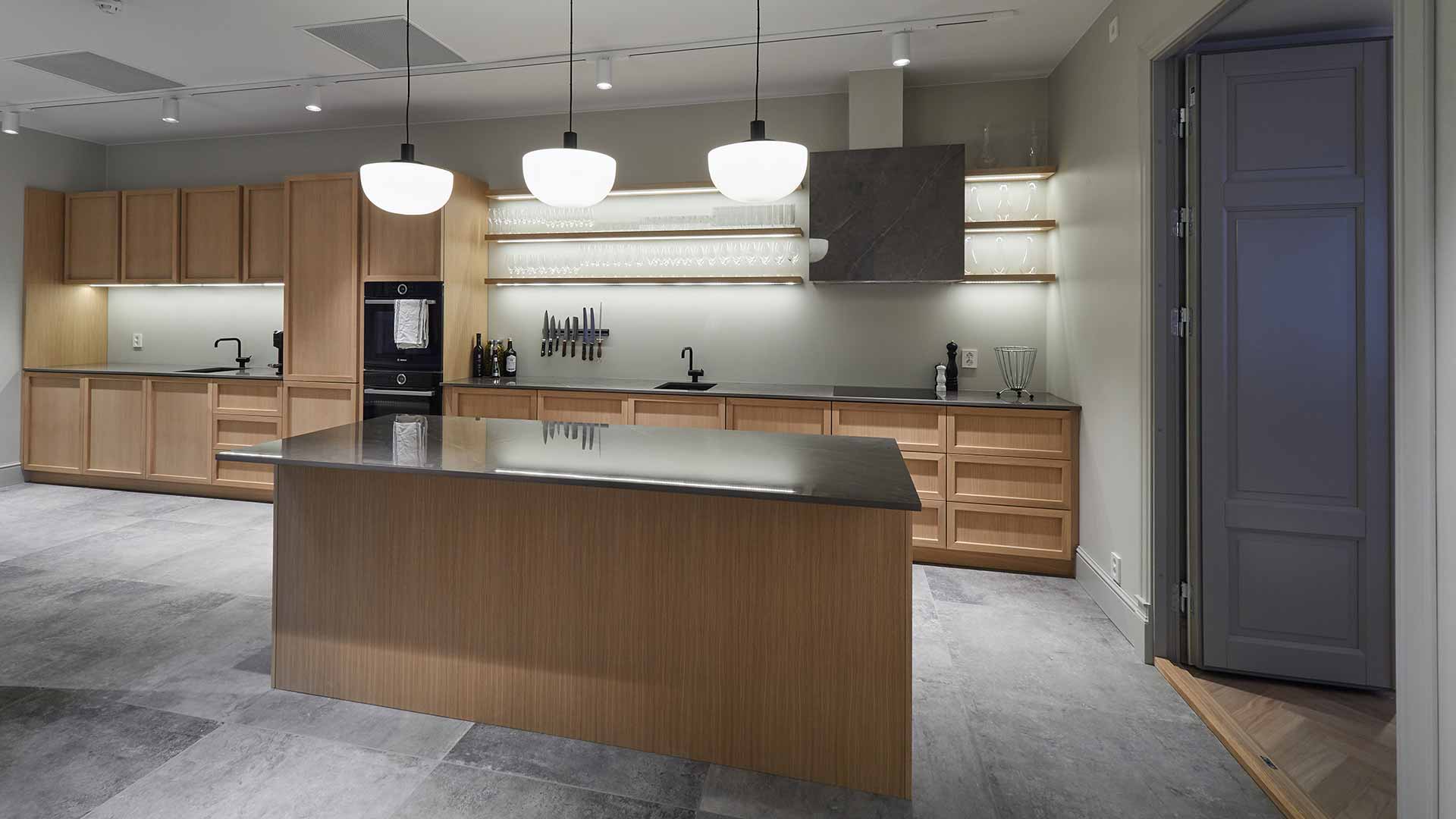 – Vi ønsket en nordisk look og et hint av klassisk Frogner-leilighet i lokalene da Alv er glad i den nordiske estetikken og fordi gården er fra slutten av 1800-tallet. Vi valgte treverk, eik og lyse gråfarger. I dette prosjektet er det mye skreddersøm og mye spesialdesign.