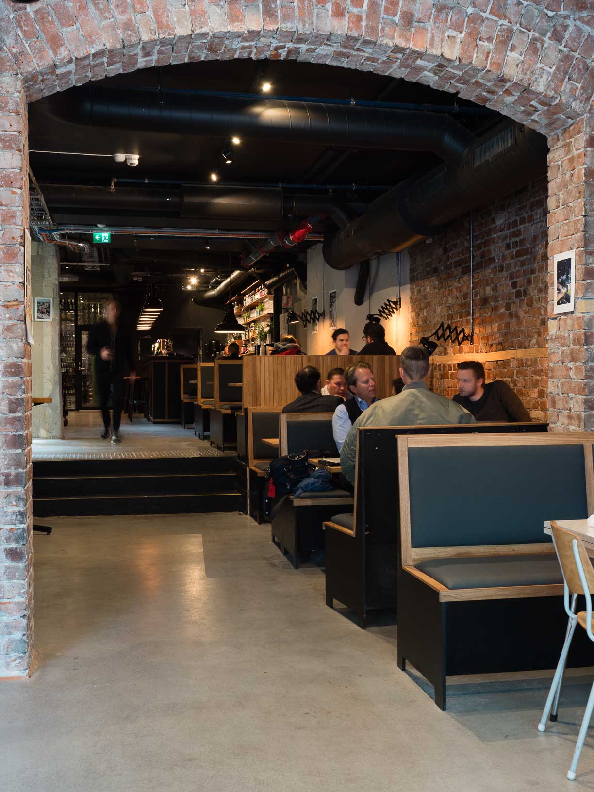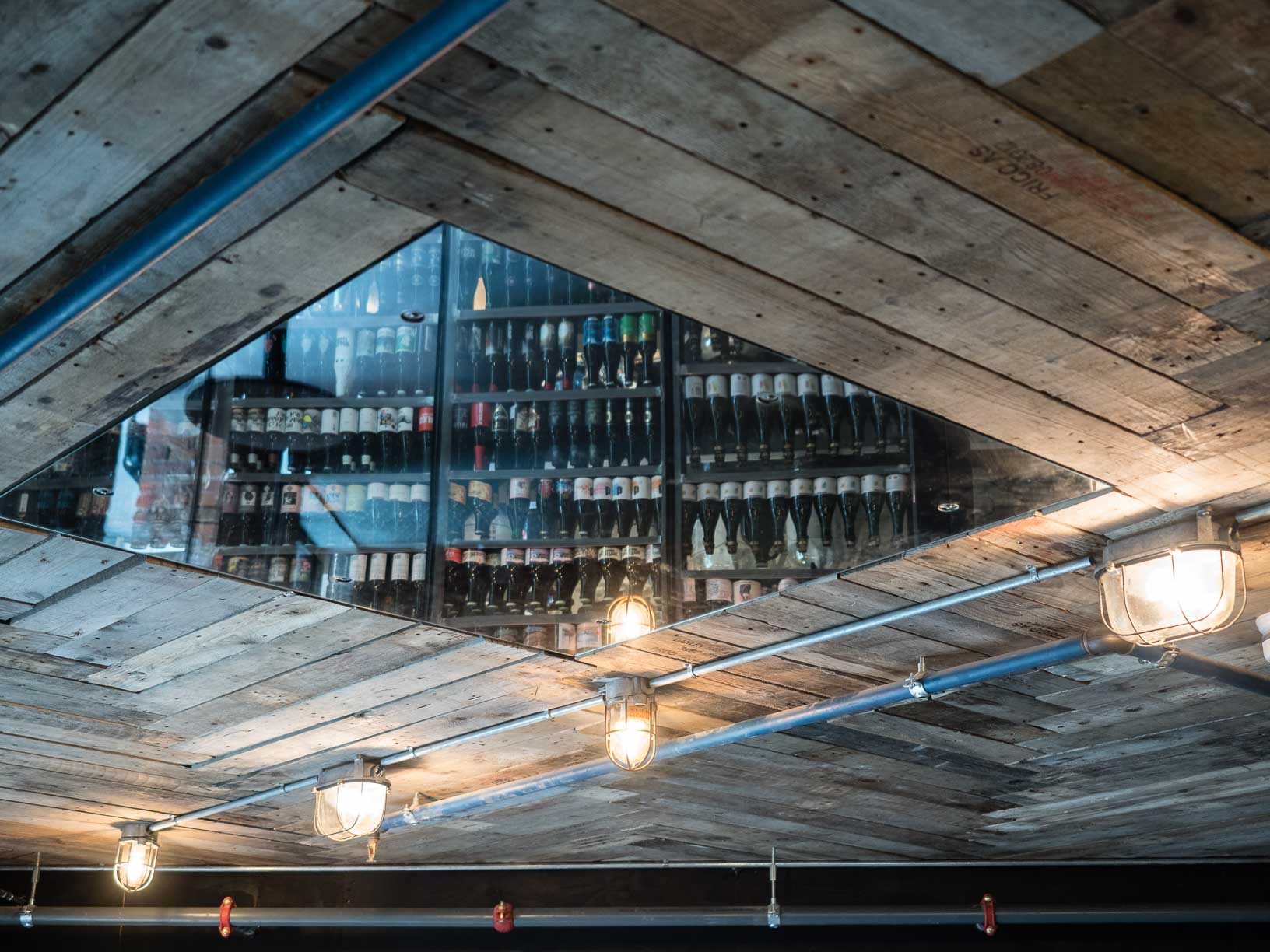 Det er ikke bare den lune stemningen gjestene kan kjenne seg igjen i når de stiger inn i de splitter nye lokalene – titter man for eksempel opp i taket finner man pallene som tidligere utgjorde veggene på den gamle adressen. Mange av materialene fra den gamle adressen er gjenbrukt på kreative måter i huset.