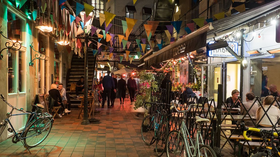 Den hyggelige passasjen Strøget er en trendy utelivsgate som går mellom Storgata og Torggata. Der finnes det flere spennende konsepter som Angst Bar, Perestroika, Cafe Sør og Uhørt, som er populære utesteder. Frisørsalongen Adam & Eva ligger også her.